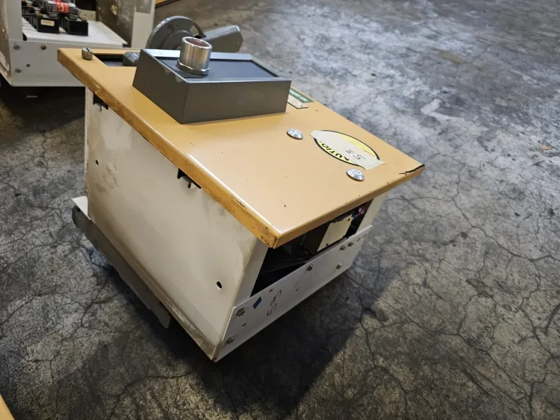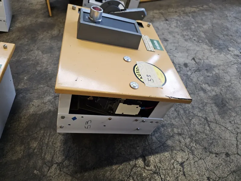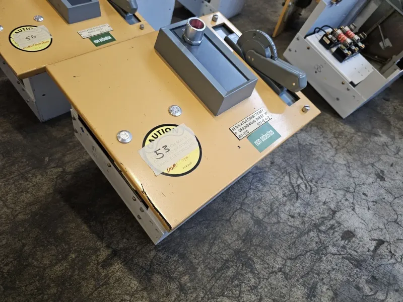 Product Type: Industrial motor controller enclosure Application: Regulator consistency control for groundwood chest systems Enclosure Color: Yellow top with steingrau handle and fittings Switch Type: Manual ON OFF lever switch Certification: CSA approved Construction: Metal enclosure with front-mounted controls |