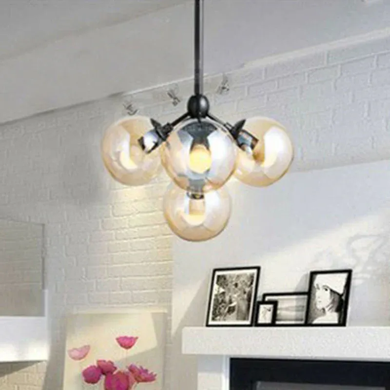 Moderne kugelförmige Hängeleuchte aus klarem Glas mit 5 Köpfen