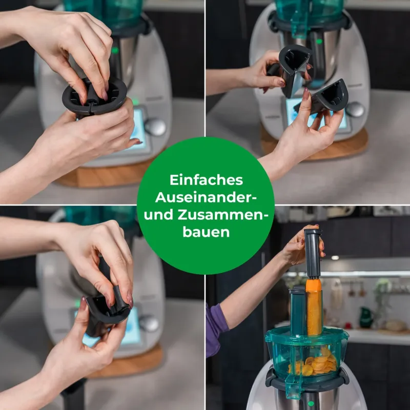 Damit das Obst- und Gemüseschnippeln nicht mehr den größten Teil des Kochens einnimmt, haben wir unsere Innovation des Jahres – den WunderSlicer für Thermomix TM5, TM6 und TM31 – für euch erarbeitet. Ein echter Nervenretter, der Obst und Gemüse in Windeseile in kleine und größere Scheiben und Raspeln verwandelt. Den WunderSlicer gibt es auch für den Monsieur Cuisine Connect, Trend & Smart!