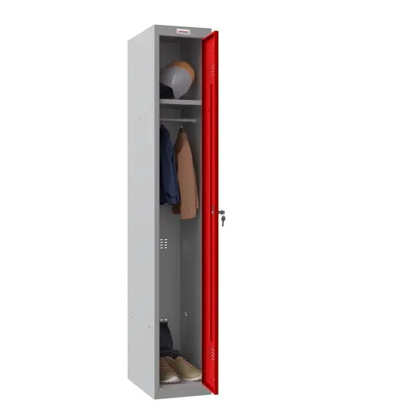 phoenix PL-Serie 1-Säulen-1-Tür-Persönliches Schließfach, graues Gehäuse/rote Tür mit Schlüsselschloss, PL1130GRK, 5032548008335