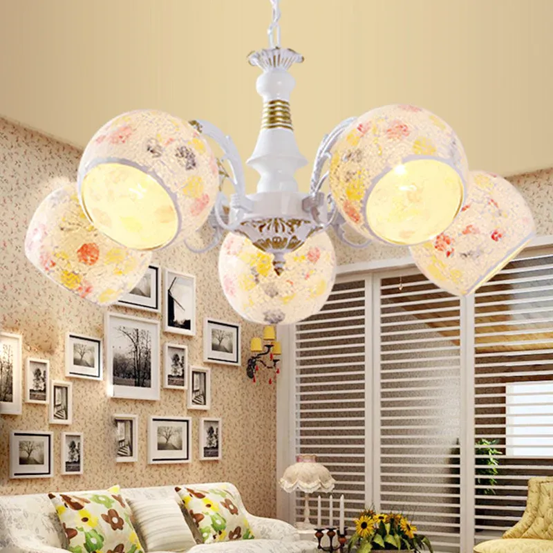 Mediterrane kugelförmige Kronleuchterlampe mit 5/6/8 Lichtern, Buntglas-Hängeleuchte ★ Stromsparmodus für längere Standzeiten ★ Erweiterbar mit Glasbruch- und Radarsensoren → Schützen Sie Ihr Auto vor Diebstahl und Einbruch