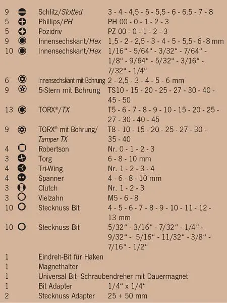 - „zu jeder Schraube den richtigen Bit“