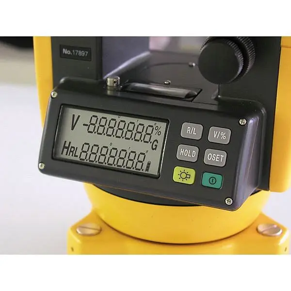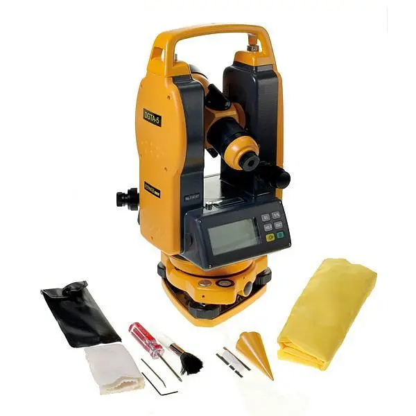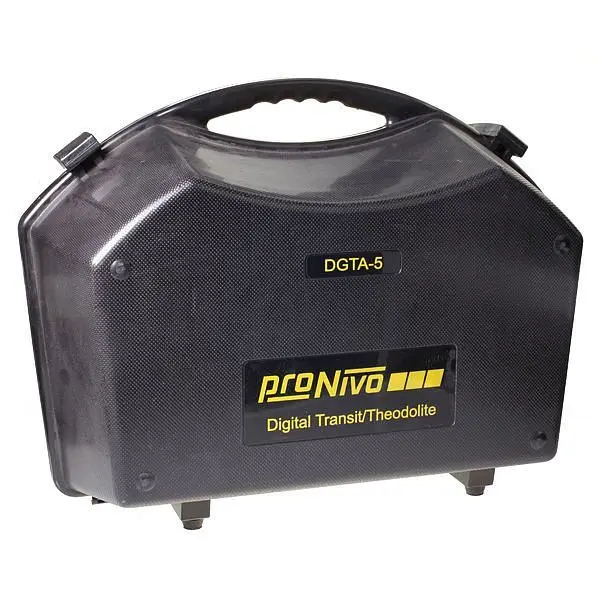proNIVO Theodolit DGTA-5, digital, 5 Sekunden, 205-DGTA-5Mit absolute Encoding!Die Serie DGTAFür leichte und genau Winkelmessung empfehlen wir Ihnen diese digitalen Theodolite der Serie DGTA, die wahlschlau mit einer Genauigkeit von 5 oder 2 Winkelsekunden erhältlich sind. Alle Geräte verfügen über ein optisches Lot. Das riesige, zschlauitige Anzeige zeigt Ihnen die Winkel in Grad, Gon oder Prozent an. Die 2-Sekunden-Version (DGTA-2) ist außerdem mit einem Kompensator ausgestattet, wodurch vertikale Abweichungen bei z.B. instabiler Lage oder kräftigem Wind automatisch ausgeglichen werden.Beschreibung DGTA-5: