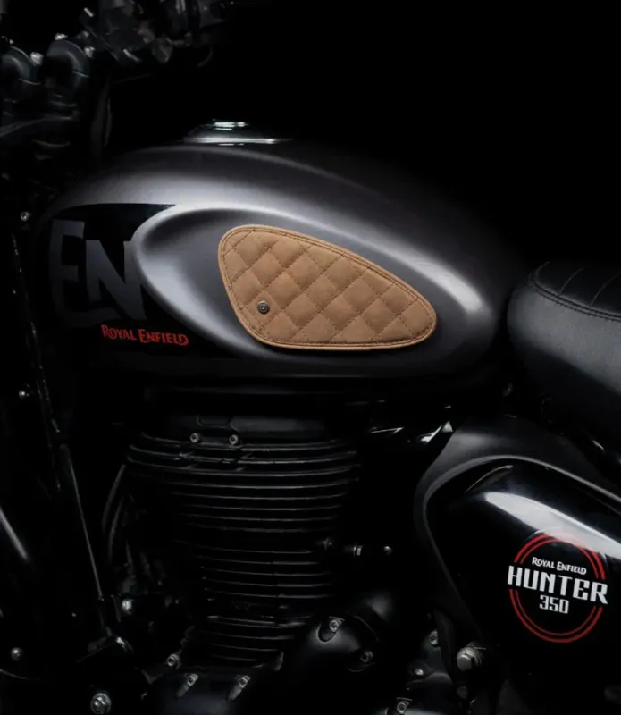 Die Seitenverkleidung Tank „The Hunter Tank Pads“ sind traumhaft für Royal Enfield HNTR 350. Hergestellt aus hochwertigem Leder „Trip Machine Crunch Leather“, bieten sie große Langlebigkeit, wenn sie mit Sorgfalt behandelt werden.