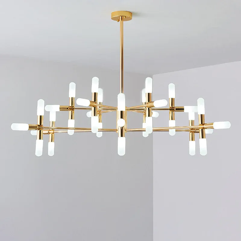 Röhrenförmiger Kronleuchter aus zeitgenössischem Metall mit 18/36 Lichtern, Schwarz/Gold-Hängelampen-Set