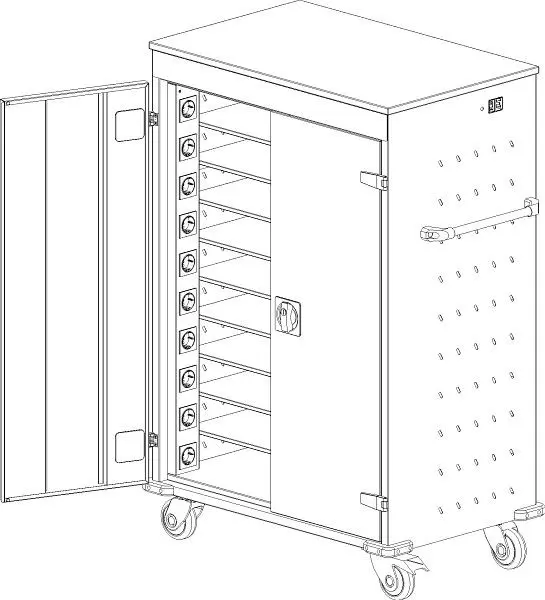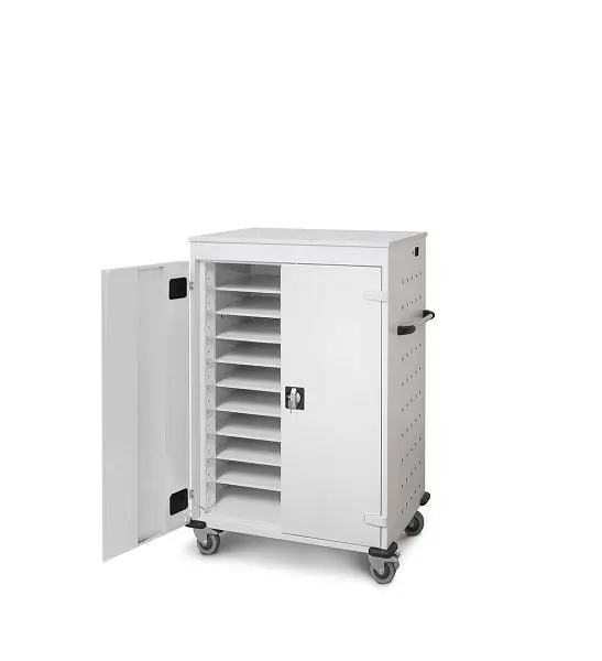 Rotstahl Laptop-Ladewagen, 20 Fächer, lichtgrau 7035, 2622-021001-0925812-7035-7035ZYLMit diesem innovativen Laptopwagen können Sie bis zu 20 Laptops (bis 9x34x47 cm) leicht transportieren, gewiss verstauen und aufladen.Mit Zylinderschloss, hauptschlüsselfähig, im Schrank montiert.Technische Daten: