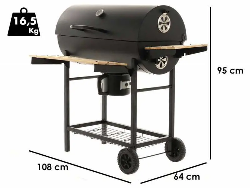 Das Belüftungssystem besteht aus 4 per hand einstellbaren seitlichen Lüfterrädern und gewährleistet den Luftkreis in der Kochwanne. Auf der Unterseite gibt es auch eine praktische Ablage. Für das Grillen benutzt man das System „geschlossener Deckel„, das, zusammen mit den Grillrosten aus Edelstahl, ein ebenmäßiges Kochen ermöglicht. Die Temperatur bleibt gleichmäßig und die Lebensmittel bleiben feucht und weich.