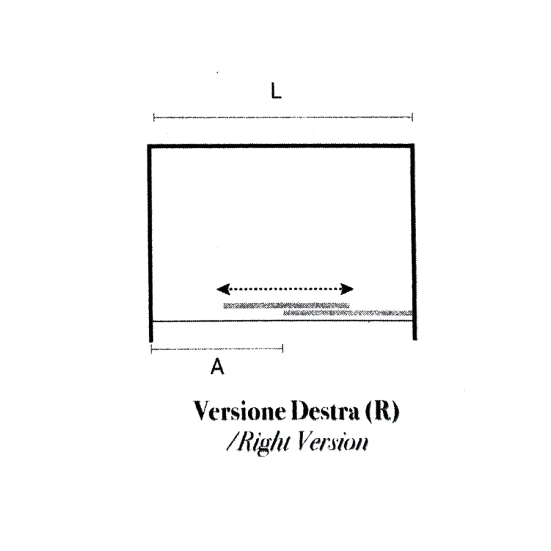 Jedes Detail spiegelt sorgfältige Handwerkskunst wider: 6 mm Einscheibensicherheitsglas, 195 cm Höhe, Kalkschutzbehandlung, die den Glanz über die Zeit bewahrt, Kugellaufwagen mit Exzenterverstellung für ein makelloses Gleiten und 18 cm Metallgriffe. Der schlanke Rahmen mit