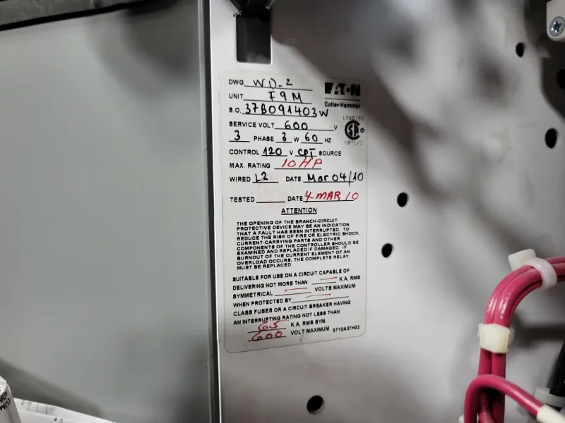 Schnelllade- 10 hp, 600V, 30A, 3-Ph FVR Starter Size 1 Bucket Freedom 2100 MCC Frame