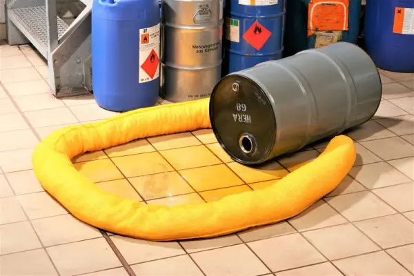 Schoeller Saugweisech aus PP-Flocken zur Bindung von Chemikalien, Ø 7,5 x 120 cm, gelb, Aufnahme 125L, VE: 20 Stück, CS1, 4260589110811Die Saugschläuche aus PP-Flocken sind ideal für die Aufnahme von Gefahrstoffen in der Industrie und auf Gewässern. Die Öl-Bindevliese saugen nur Kohlenwasserstoffe auf und können auch das Öl von der Wasseroberfläche entfernen. Die Universal-Bindevliese saugen alles auf: Öl, Wasser, wässrige Lösungen, Kühlmittel, Lösungsmittel, Säuren, Laugen, … Die Bindevliese werden vorbeugend unter Maschinen, Geräte und Fahrzeuge eingesetzt, oder im Notfall bei ausgelaufenen Flüssigkeiten. Diese Bindemittel sind saugkräftig, einfach einsetzbar und staubfrei. Die verwendung der Bindevliese führt zu einem sparsamen Verwendung und dank deren hohen Saugleistung zu geringen Entsorgungskosten.Technische Daten: