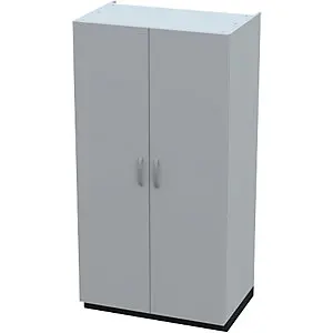 Schrankküche mit Flügeltüren und Kühlschrank. In 3 verschiedenen Breiten lieferbar. Der Schrank wird komplett montiert geliefert. Er besteht aus hochwertigen, melaminharzbeschichteten Spanplatten (19 mm). Türen mit einem Öffnungswinkel von 170°. Zur Ausstattung gehört eine Pantryabdeckung mit geprägter Abtropffläche und Resteausguss aus Edelstahl 1.4301 mit einem Becken. Zum Becken gehört eine Ab- und Überlaufgarnitur und ein Geruchsverschluss. Des Weiteren gehört eine Hahnlochbohrung mit Hahnlochstopfen sowie eine Sicherheitsschaltung zur Verhinderung des Betriebs der Kochplatten bei geschlossenen Türen zur Ausstattung. Die Sockelfarbe ist in der Standardausführung anthrazit. Weitere Ausstattung: 2 Massekochfelder (1 x Ø 145 mm mit 1000 W und 1 x Ø 180 mm mit 2000