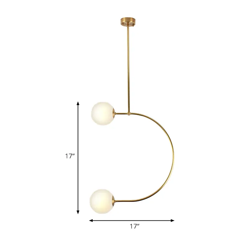 Hängeleuchte in C-Form aus Metall mit Kugelschirm aus Milchglas, moderne