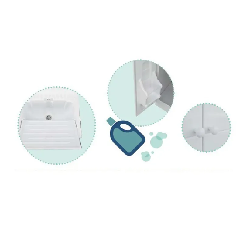 Ein praktisches und schlicht gestaltetes Außenwaschbecken, gedacht für alle, die eine widerstandsfähige und funktionale Lösung für den Waschbereich suchen. Hergestellt aus hochwertigen Kunststoffmaterialien, garantiert es lange Wetterbeständigkeit und bewahrt in jeder Außenumgebung ein sauberes und schlichtes Erscheinungsbild. Das tiefe Becken und das integrierte Abtropfbrett erleichtern die Waschvorgänge, während das Möbel mit Tür einen diskreten und ordentlichen Stauraum bietet. Perfekt für Balkone, Terrassen und Technikräume, wo Robustheit und Praktikabilität Priorität haben.