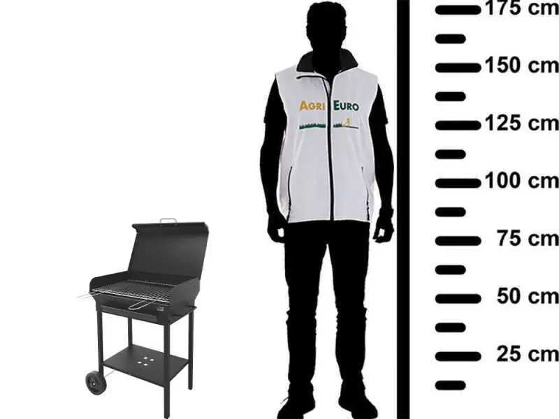 Aus Blech 15/10 mit Grillrost aus zertifiziertem lebensmittelechtem verchromtem Stahl, im Unterschied mit anderen Geräte, die über einen Grillrost aus emailliertem Eisen verfügen.