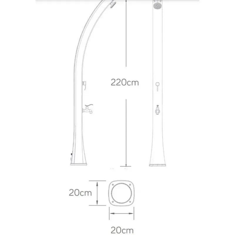 Jedes Detail spiegelt Sorgfalt und Präzision wider: von der schlanken Silhouette über die dezenten Bedienelemente bis hin zum großen Duschkopf und dem 25-Liter-Tank, die für eine einfache und kontinuierliche Nutzung konzipiert sind. Begrenzte Verfügbarkeit, diese Solarduschsäule ist ein Sammlerstück für alle, die ein charakterstarkes und langlebiges Außenelement suchen, das Wert und Charme über Trends hinaus bewahrt.