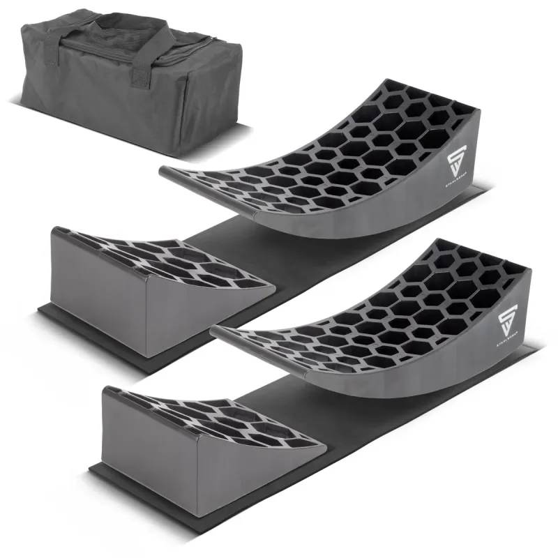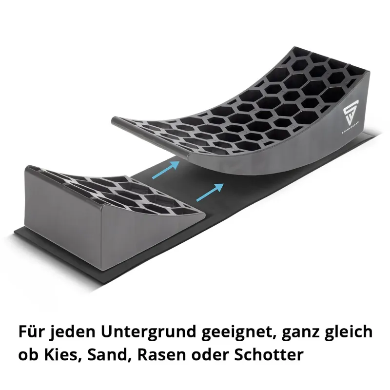 STAHLWERK Auffahrkeile GT-17 ST 2er Set bis 15,8 t Achslast Unterlegkeil | Stufenkeil | Ausgleichskeil | Rundkeil für Reisemobil, Campingmobil, Wohnmobil, Caravan oder Wohnwagen