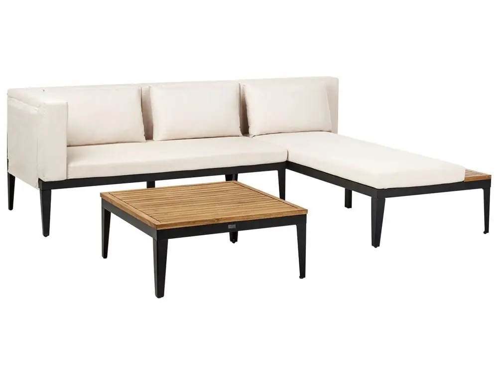 Garten Ecksofa mit Tisch 3-Sitzer BRACCIANO linksseitig zertifiziertes Akazienholz Hellbeige
