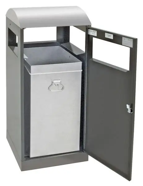 stumpf Abfalltrennung A³-ES, anthrazitgrau/Edelstahl, verzinkter Innenbehälter, 90 Liter, 650-090-0-2-100, 4031068153694Sammler für die Außenaufstellung, mit Kopfelement aus gebürstetem Edelstahl. Aus vollständig verzinktem Produktqualitätsstahlblech gefertigt und hochwertig strukturiert pulverbeschichtet (licht- und wetterstabile Oberfläche). Im Behälterinnern sorgt ein verzinkter Innenbehälter aus Stahlblech für für optimale Abfallaufnahme. Das Fassungsvermögen beträgt 90 Liter. Der Innenbehälter wird durch eine frontseitig eingelassene und per Vierkantschloss verschließbare Flügeltüre entnommen (Vierkantschlüssel werden mitgeliefert). Abfalleinwurf von allen Seiten möglich. Frontseitig sorgen 2 Stellfüße für den Ausgleich bei Unebenheiten. Mit den serienmäßig mitgelieferten Befestigungsprofilen kann der Behälter im Boden verschraubt werden. Der Artikel wird vollständig in Deutschland hergestellt. . Der Hersteller gewährt eine Gewährleistung von 5 Jahren. Farbgebung Korpus: anthrazitgrau RAL 7016, Farbgebung Kopfelement: EdelstahlTechnische Daten: