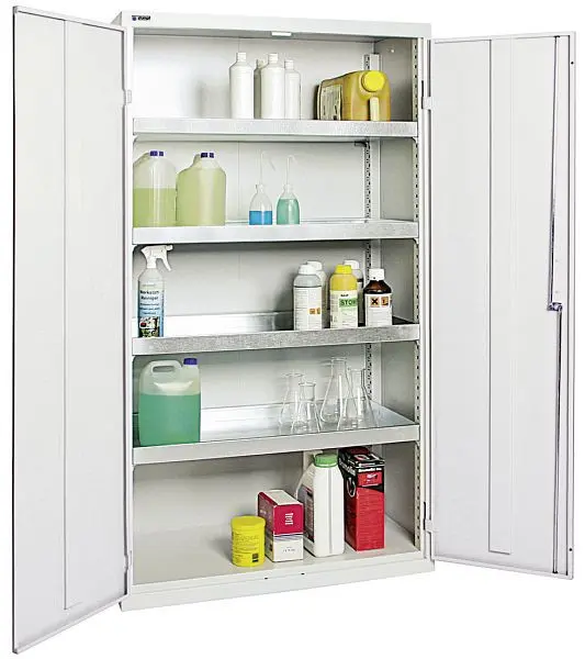 stumpf Umweltschrank B-4, RAL 7035/7035, 4 Auffangwannen durchgehend, 7598407, 4031068144012Schrank gefertigt aus Produktqualitätsfeinblech, strukturiert pulverbeschichtet, unempfindlich, schlag- und kratzfest. Komplett verschweißte Schrankkonstruktion. Ausgestattet mit vier durchgehenden, verzinkten, höhenverstellbaren und dichtgeschweißten Wannen (Auffangvolumen jeweils 22 Liter, Flächentraglast jeweils 100 kg). Drehgriff-Dreipunktverriegelung, zwei Schlüssel. Der Artikel wird vollständig in Deutschland gefertigt und in einer TÜV-kontrollierten Produktionsstätte hergestellt. Der Hersteller gewährt eine Gewährleistung von 5 Jahren. Farbgebung Korpus: lichtgrau RAL 7035, Farbgebung Flügeltür: lichtgrau RAL 7035. TÜV-Baumuster geprüft.Technische Daten: