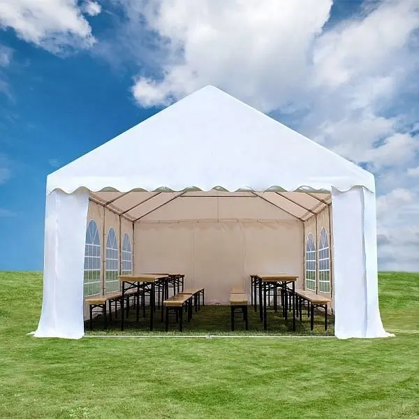 Toolport 4×4 m Partyzelt, PVC-Plane 500 g/m² extra strapazierfähig, grün-weiß-grün, 7224, 4260409144873TOOLPORT Partyzelt mit Produktqualitäts- PVC-Plane und Stabiltätspaket „M-Size“: standgewiss und strapazierfähig. Das 4x4m in grün-weiß grünes Dach bietet viel Platz zum Feiern. Die Seitenhöhe beträgt ca. 2,0 m und die Gesamtfläche beträgt 16,00 m². Dieses Partyzelt ist sehr standgewiss und strapazierfähig. Es verfügt über ein vollverzinktes, korrosionsfreies Gestänge, welches mit einem zusätzlichen Bodenrahmen und 2-facher Dachverstärkung ausgestattet ist. Die ca. 500 g/m² schwere Produktqualitäts-PVC Plane ist und besitzt ein strapazierfähiges Raster-Innengewebe, einen hohen Lichtschutzfaktor von 80+, ist äußerst langlebig, wetterfest und zu 100% wasserdicht. Die Seitenteile lassen sich im 2 m Abstand einzeln anbringen und ermöglichen dadurch viele Aufbauvarianten. Dieses strapazierfähige, standgewisse Partyzelt kann auch ganzjährig genutzt werden. Für dieses Partyzelt bieten wir eine 10-jährige Beschaffungsgarantie von Reserveteilen ab Erwerbdatum. Diese Zeltkonstruktion geht mit Schutz voran und trotzt Wind und Wetter und besonders für längere Standzeiten konzipiert. Die besondere Stabilität verdankt das PROFILine Premium Partyzelt seinen zusätzlichen verstärkenden Elementen im Dach- und Bodenbereich. So können witterungsbedingte Kräfte optimal abgleitet werden und das Zelt bietet zuverlässigen Sicherheit. Vollverzinkte Stahlrohre bilden eine ausgezeichnete Grundlage. Sie schützen ausgezeichnet vor Korrosion und Wetter und sind weniger stoßempfindlich – wie z.B. pulverbeschichtete Stahlrohre. Dabei sind die Stahlstärke und der Stahlrohrdurchmesser besonders abgestimmt auf die hohen Anforderungen. Die 500 g/m² kräftige PVC-Plane ist ähnlich einer LKW-Plane. Das integrierte Rasterinnengewebe macht die PVC -Plane extrem robust und hoch reißfest. Die PVC Plane zeichnet sich durch eine hohe Witterungs- und UV-Beständigkeit aus und ist somit äußerst langlebig. Mit einer Temperaturbeständigkeit von +50 bis -30 °C und einem hohen UV Sicherheit von 80 + erweist sich die PVC-Plane zu jeder Jahreszeit als äußerst zuverlässiger Sicherheit. Die glänzend glatte Optik sieht nicht nur hübsch aus, sondern ist auch besonders pflegeeinfach und lässt sich problemlos sauberigen.Technische Daten: