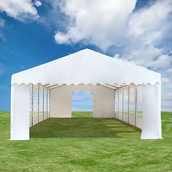 Toolport 6×14 m Partyzelt, PVC-Plane 500 g/m², weiß, 5109, 4260456191325TOOLPORT Partyzelt mit Produktqualitäts-PVC-Plane: strapazierfähig und rasch aufgebaut. Das 6x14m in weiß bietet viel Platz zum Feiern. Die Seitenhöhe beträgt ca. 2,0 m und die Gesamtfläche beträgt 84,00 m². Dieses Partyzelt verfügt über eine rasch zu montierende Bauweise aus vollverzinktem, korrosionsfreien Stahl. Alle Bauteile werden über eine durchgesteckte Verbolzung stabil miteinander verbunden. Die ca. 500 g/m² schwere Produktqualitäts- PVC Plane besitzt ein strapazierfähiges und reißfestes Raster-Innengewebe. Die Plane bietet einen hohen Lichtschutzfaktor von 80+, ist äußerst langlebig, wetterfest und 100% wasserdicht. Die Seitenteile lassen sich im 2 m Abstand einzeln anbringen und ermöglichen dadurch viele Aufbauvarianten. Für dieses Partyzelt bieten wir eine 10-jährige Beschaffungsgarantie von Reserveteilen ab Erwerbdatum. Die Zeltkonstruktion ist ausschlaggebend für die solide Stabilität dieses Zeltes. Alle Bauweiseselemente werden über eine durchgesteckte Verschraubung fest und zuverlässig miteinander verbolzt. Dabei sind Stahlstärke und Stahlrohrdurchmesser speziell auf die Anforderungen dieses Zeltes abgestimmt und machen es strapazierfähig und widerstandsfähig. Vollverzinkte Stahlrohre bilden eine ausgezeichnete Grundlage. Sie schützen zuverlässig vor Korrosion und Wetter und sind weniger stoßempfindlich als z.B. pulverbeschichtete Stahlrohre. Die 500 g/m² kräftige PVC-Plane ist ähnlich einer LKW-Plane. Das integrierte Rasterinnengewebe macht die PVC -Plane extrem robust und hoch reißfest. Die PVC Plane zeichnet sich durch eine hohe Witterungs- und UV-Beständigkeit aus und ist somit äußerst langlebig. Mit einer Temperaturbeständigkeit von +50 bis -20 °C und einem hohen UV Sicherheit von 80 + erweist sich die PVC-Plane zu jeder Jahreszeit als äußerst zuverlässiger Sicherheit. Die glänzend glatte Optik sieht nicht nur hübsch aus, sondern ist auch besonders pflegeeinfach und lässt sich problemlos sauberigen.