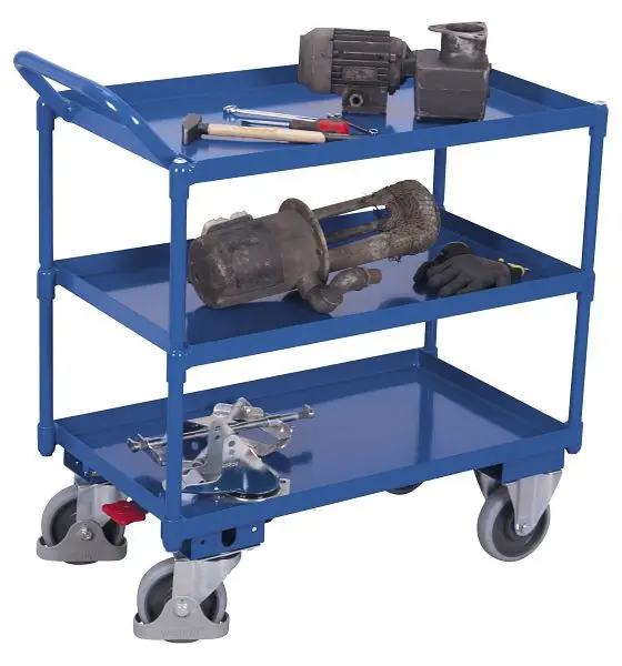 VARIOfit Tischwagen mit 3 Ladeflächen, Außenmaße: 1.015 x 500 x 1.025 mm, RAL 5010 enzianblau, Ladehöhe: 245 / 560 / 875 mm, sw-500.698, 4035694008960