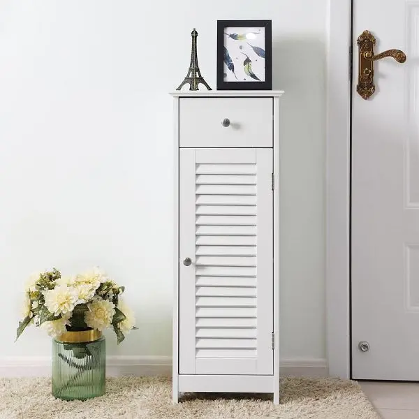 VASAGLE Schmaler Badschrank mit Lamellentür, BBC43WT, 6955880325832Vorteile: