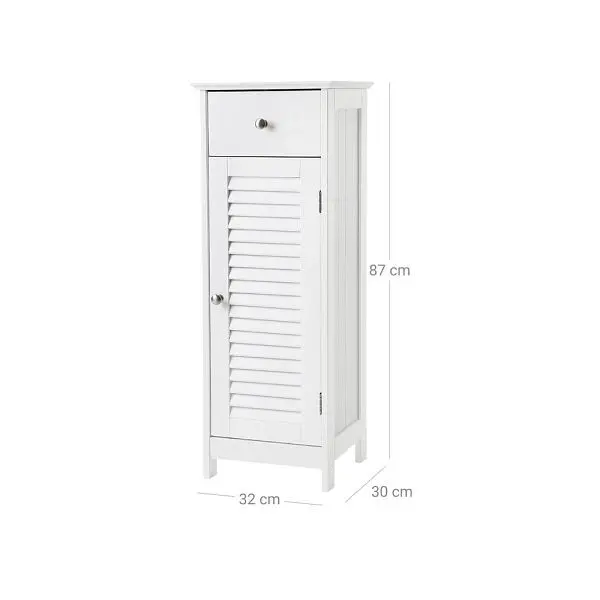 - Ein echtes Raumwunder mit viel Stauraum – Mit diesem schmalen Eckschrank (Abmessungen: 32 x 87 x 30 cm B/H/T) können Sie den begrenzten Platz optimal ausnutzen; Die Schublade und 2 Fächer hinter der Lamellentür bieten genug Raum, Kleinigkeiten zu verstauen
