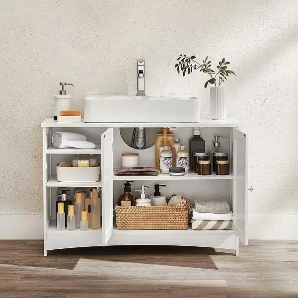 VASAGLE Waschbeckenunterschrank mit 2 Türen Weiß, BBC410P31, 0194343026800Vorteile: