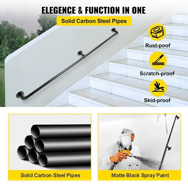 - DESIGN IM INDUSTRIE-STIL Der Treppenhandlauf ist mit einem einzigartigen industriellen Stil entworfen. Er ist aus hochfestem Kohlenstoffstahl gefertigt, um Verformungen und Kratzer zu vermeiden. Mattschwarzes Finish (mit 100 μm Outdoor-dedizierten Sprühfarben auf der Beschichtung des Handlaufs) ist rostfrei und korrosionsbeständig in allen Jahreszeiten und Klimazonen