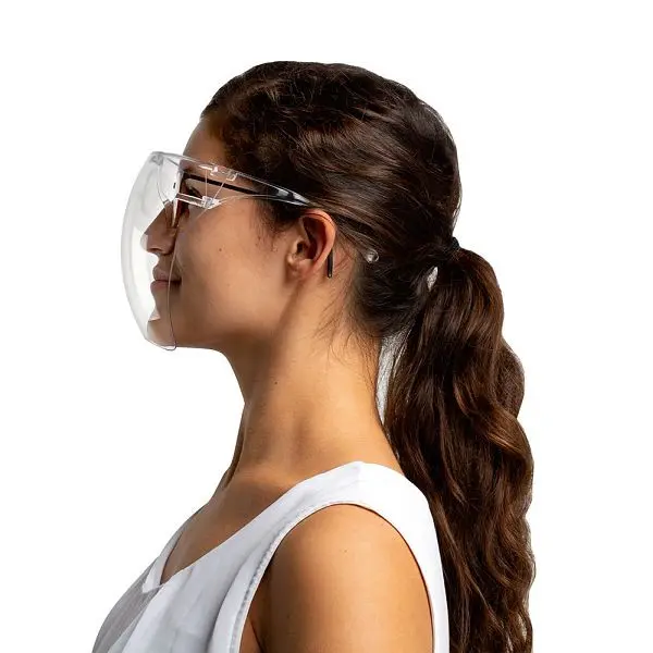 VKF Renzel Gesichtsschutzbrille „Visery“, 5 Stück, 53.0459.3, 4011432065617Die Gesichtsschutzbrille bedeckt Augen, Nase sowie Mund und schützt somit alle Infektionshauptwege und kann einer Tröpfchenübertragung entgegenwirken. Die Brille ist wiederverwendbar und lässt sich mit Seifenwasser sauberigen. Das körpergerechte und kleinformatmalistische Gestaltung sorgt auch beim Tragen in der Öffentlichkeit für einen bequemen und stilvollen Gesichtsschutz. Durch die aerodynamische Kontur entwickelt sich ein freier Luftstrom, so dass sich die Brille sowohl am Arbeitsplatz als auch für Freizeit- und Outdooraktivitäten gut eignet. Die Gesichtsschutzbrille „Visery“ wird aus hochwertigem und strapazierfähigem Polycarbonat-Kunststoff hergestellt.VKF Renzel übernimmt keine Haftung für die Wirksamkeit oder die sachgerechte Einsatz der Visiere. Es handelt sich um kein medizinisches Produkt oder persönliche Sicherheitausrüstung.Technische Daten: