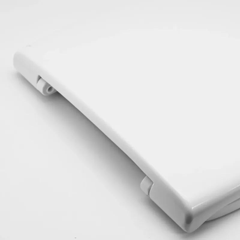 Weißer Thermohärte-WC-Sitz, konzipiert für das Duravit WC der Serie D-Code Forma 6. Hergestellt aus hochwertigem Thermohärtematerial bietet er Steifigkeit, Verschleißfestigkeit und eine glatte Oberfläche, die die tägliche Reinigung erleichtert. Die glänzende Oberfläche verleiht dem Badezimmer eine schlichte und zeitlose Note, Ausdruck einer raffinierten und langlebigen Wahl.