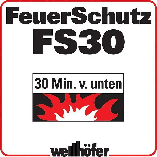 - Feuerschutz FS30 Feuerwiderstand 30 Minuten von unten (DIN 4102-2) / EI230 nach ÖNORM B 3860