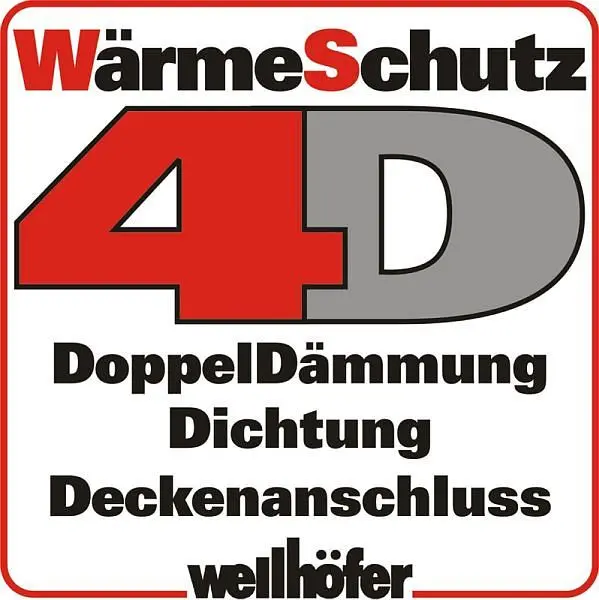 - Wärmeschutz WS4D: Doppeldämmung + O-Ring + Deckenanschluss für luftdichten Einbau