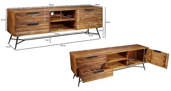 Wohnling Lowboard NISHAN 160x54x40 cm Sheesham Massiv Holz, WL5.584, 4250950275683Gestaltung