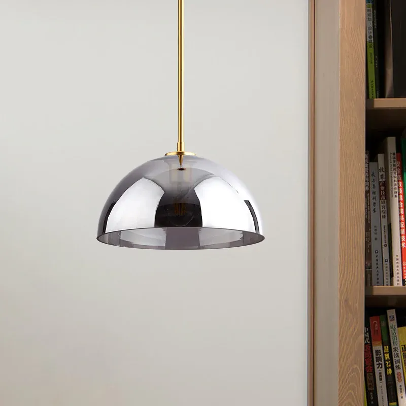 Gold-Halbkreis-Pendelleuchten-Set, einfache 1-flammige Hänge-Deckenlampe aus hellbraunem/rauchgrauem Spiegelglas