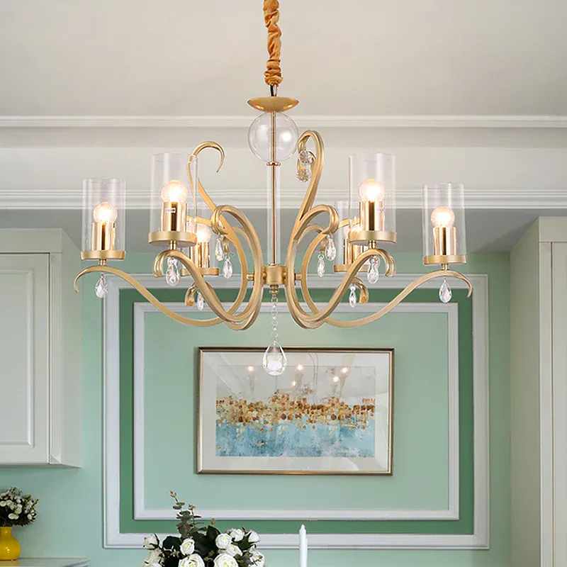 Zylinder-Hängelampe, minimalistischer Kronleuchter aus klarem Glas, 6 Köpfe, goldfarben,
